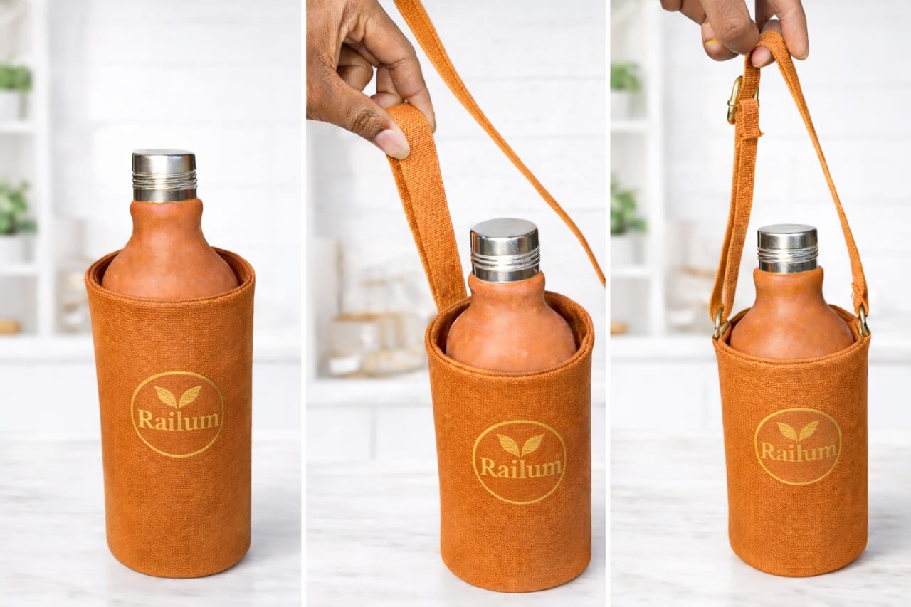 ![One litre Clay Water Bottle, With bag [1000 ml] - Image 4](https://railum.in/wp-content/uploads/2025/12/WhatsApp-Image-2026-01-05-at-11.23.13-AM-e1770477846360.jpeg)