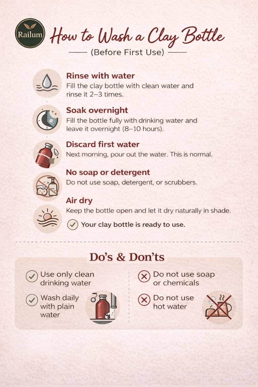 ![Railum Natural Clay Water Bottle, Without bag [1 litre] - Image 4](https://railum.in/wp-content/uploads/2025/12/WhatsApp-Image-2025-12-31-at-1.00.54-PM.jpeg)